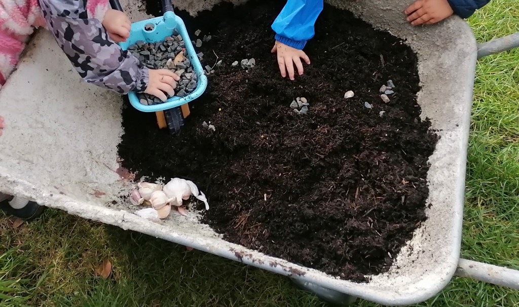 It’s been all about Garlic this morning, they sorted the soil and made sure it has drainage, separated the cloves and planted them xxx