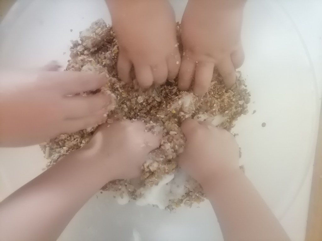 They are all very excited today being in charge of feeding the birds and making their dinner. They told all the singing birds that “dinner won’t be long” 🤣💕, lovely bird fat balls made today, plus lots of sticky, messy, play, winner, winner, fat balls for birds dinner 🤔🤦🤣💕 xxx
